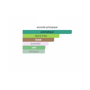 Les notes de tête sont Romarin, Lavande, Néroli et Petit-grain; les notes de cœur sont Férule gommeuse, Sauge sclarée, Jasmin et Géranium; les notes de fond sont Ambre, Bois de santal, Mousse de chêne, Vétiver et Cèdre.