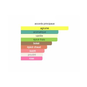 Les notes de tête sont Mandarine, Poivre noir, Chinotto, Citron et Romarin; les notes de coeur sont Poivre, Géranium et Rose; les notes de fond sont Vanille, Fève de tonka, Cèdre du Texas, Bois de santal, Patchouli et Mousse de chêne.