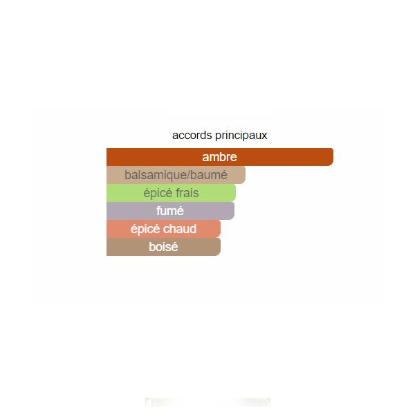 Les notes de tête sont Bergamote, Origan, et Poivre; les notes de cœur sont Encens, Ambre, Ciste et Opoponax; les notes de fond sont Cuir, Patchouli, Oud et Bois de santal.