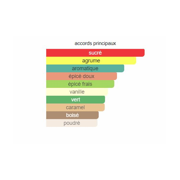 – Eau de Parfum (20 % Essence + alcool dénaturé) Tenue 2 à 4 H en moyenne.