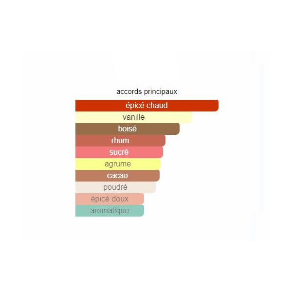 Les notes de tête sont Prune et Musc; les notes de coeur sont Bois blonds et Ciste; les notes de fond sont Vanille et Ambre.